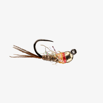 A tungsten jigged pheasant tail with a hot spot is a well known and deadly Euro nymph pattern. RIO's French Dip is an excellent bug for Euro nymphing with small flash legs to give more life and movement to the bug, and tied on a barbless hook. We want anglers to be able to fully outfit an entire fly box with this one pattern, and offer it with a gold tungsten bead for maximum flash, and in a matte black bead for least flash. With five proven colors of dubbing/legs offered in each bead choice, three hook sizes, and two bead sizes per pattern, this give anglers an awesome range of options to dial in weight, size, color and flashiness for each piece of water. No fish is safe.