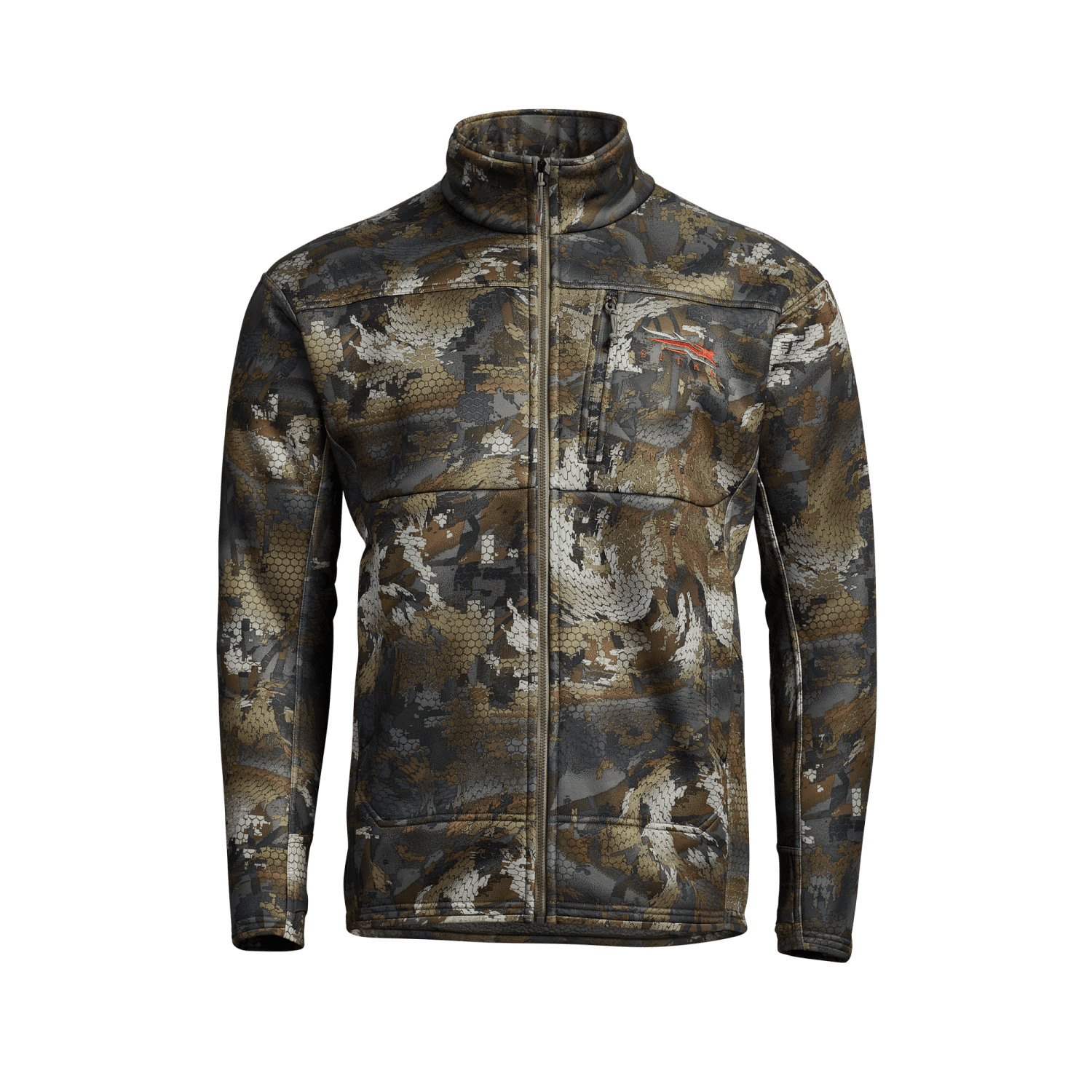 The Sitka Traverse Jacket offers versatile performance for hunters and outdoor enthusiasts. With a high-loft Berber fleece interior for a soft feel that delivers plenty of warmth and mapping in lighter weight fleece panels at the sides and underarms for streamlined fit. An ultra-quiet polyester knit face with durable water repellent finish helps shed light precipitation. Designed for layering or standalone wear, the Traverse Jacket is a go-to piece of Sitka Gear for all-season pursuits. Fabrics used in this hoody are constructed from recycled materials.